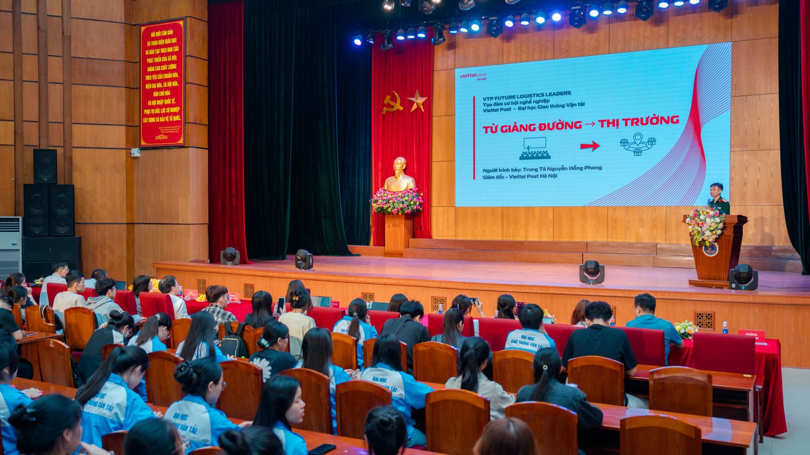 Sáng ngày 24/04/2026, tại Hội trường lớn Trường Đại học Giao thông vận tải, chương trình “VTP Future Logistics Leaders – Tuyển chọn và Đào tạo Quản lý trẻ toàn quốc” đã được tổ chức thành công với sự phối hợp giữa Nhà trường và Tổng Công ty Cổ phần Bưu chính Viettel (Viettel Post). Sự kiện thu hút sự tham gia của đông đảo sinh viên năm cuối, cựu sinh viên và học viên quan tâm đến lĩnh vực logistics, chuỗi cung ứng và vận hành doanh nghiệp.