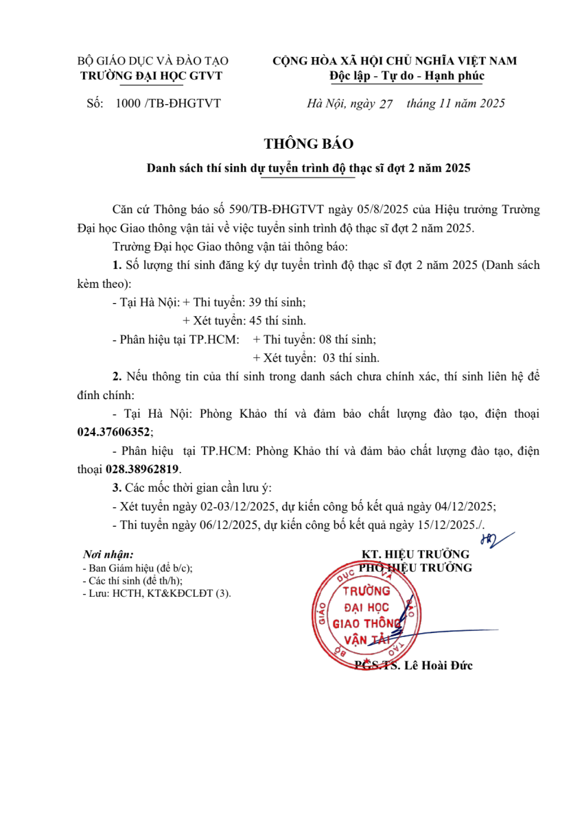 THÔNG BÁO DANH SÁCH THÍ SINH DỰ TUYỂN TRÌNH ĐỘ THẠC SĨ ĐỢT 2 NĂM 2025 Đính kèm: TB danh sách ĐK.pdf Đăng bởi: Phòng Khảo thí & ĐBCLĐT