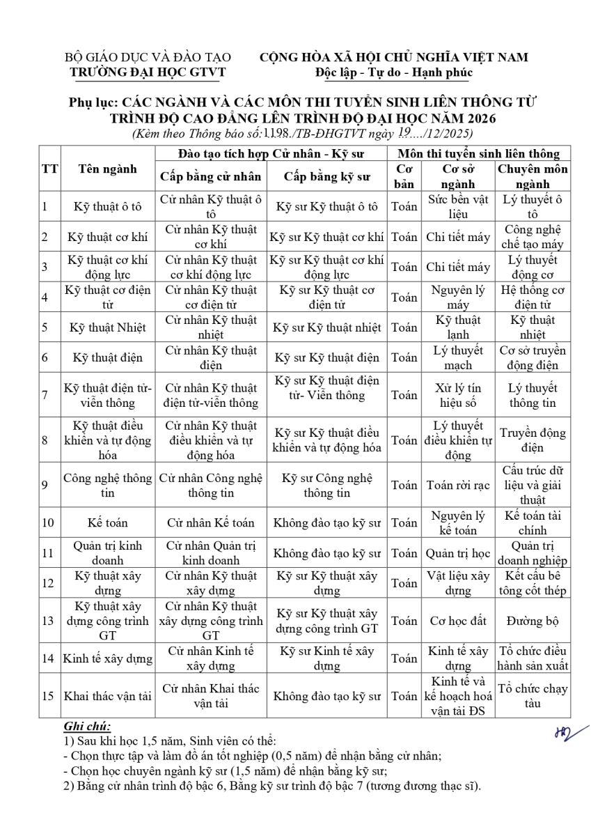THÔNG BÁO TUYỂN SINH LIÊN THÔNG TỪ TRÌNH ĐỘ CAO ĐẰNG LÊN TRÌNH ĐỘ ĐẠI HỌC NĂM 2026 Đăng bởi: Phòng Khảo thí & ĐBCLĐT
