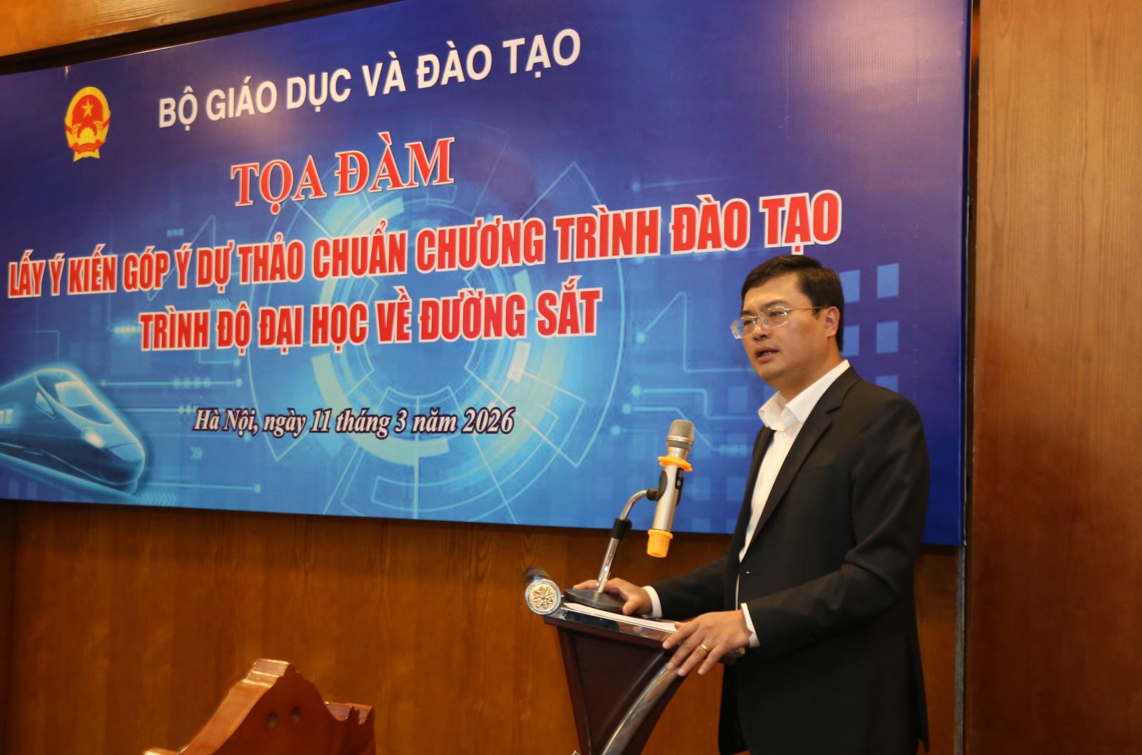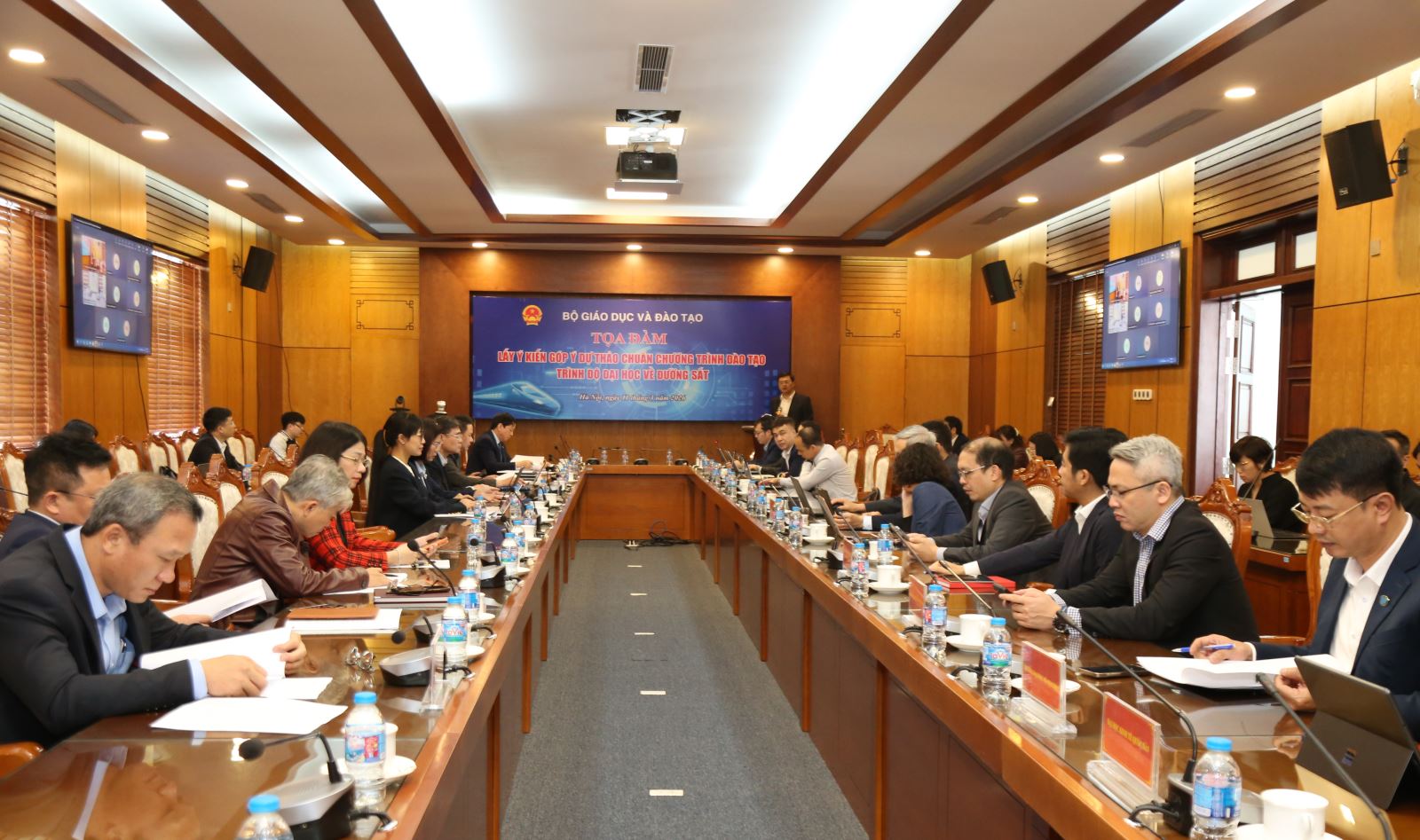 Thực hiện Kế hoạch của Bộ Giáo dục và Đào tạo (GD&ĐT) về Xây dựng, thẩm định và ban hành Chuẩn chương trình đào tạo trình độ đại học về đường sắt, ngày 11/3/2026 Trường Đại học Giao thông vận đã tải tổ chức buổi tọa đàm lấy ý kiến kiến của các chuyên gia, cơ sở đào tạo và doanh nghiệp đối với dự thảo chương trình đào tạo.