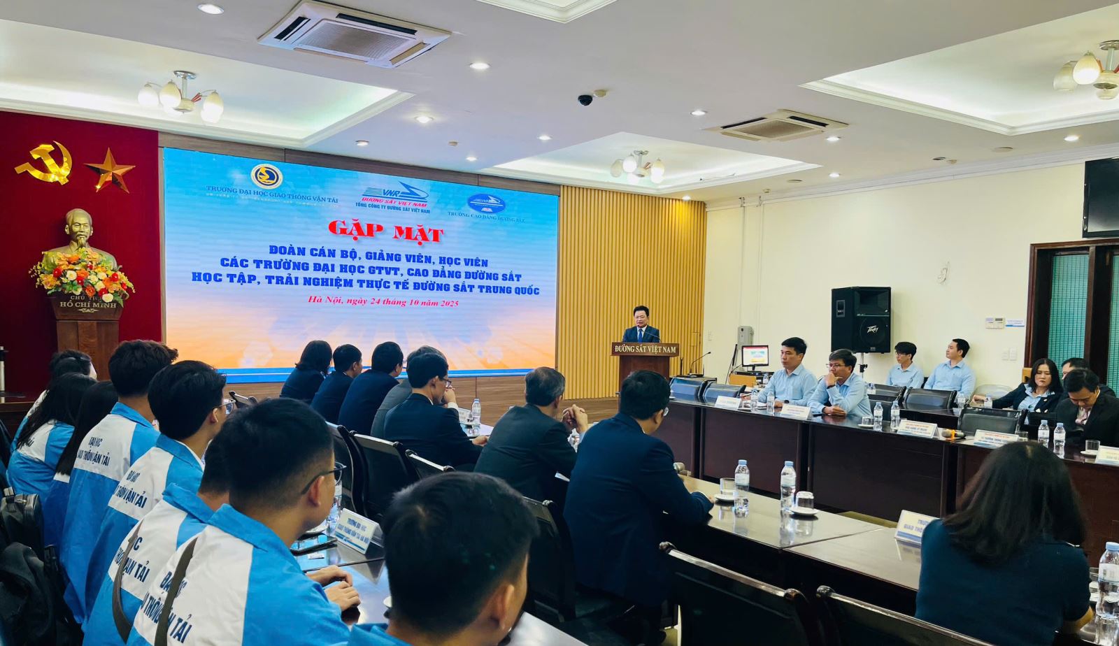 Nằm trong chuỗi hoạt động hợp tác giữa Nhà trường và Tổng công ty Đường sắt Việt Nam nhằm thúc đẩy mô hình hợp tác "3 nhà": Nhà nước - nhà trường - nhà doanh nghiệp, kết hợp giữa đào tạo, nghiên cứu, thực hành giữa nhà trường với doanh nghiệp; Từ ngày 24 đến 26/10/2025 những sinh viên ưu tú đến từ các Khoa Công trình, Điện – Điện tử, Cơ khí, Vận tải – Kinh tế tại Trường Đại học Giao thông vận tải đã có cơ hội tham gia chuyến trải nghiệm thực tế tuyến đường sắt liên vận quốc tế Việt Nam – Trung Quốc – Hành trình kết nối tri thức và văn hoá.