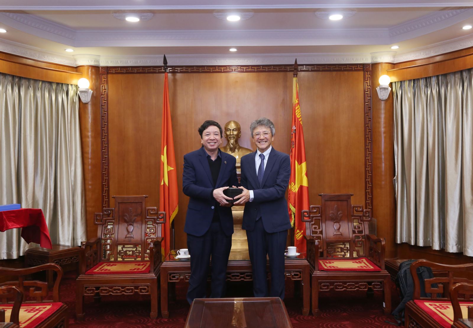 PGS.TS Nguyễn Văn Hùng tặng quà lưu niệm cho Giáo sư Akimasa Fujiwara