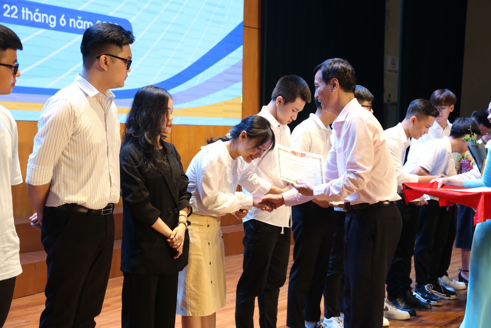 Lãnh đạo Nhà trường trao giấy khen, phần thưởng và chụp ảnh lưu niệm cùng các sinh viên đạt giải