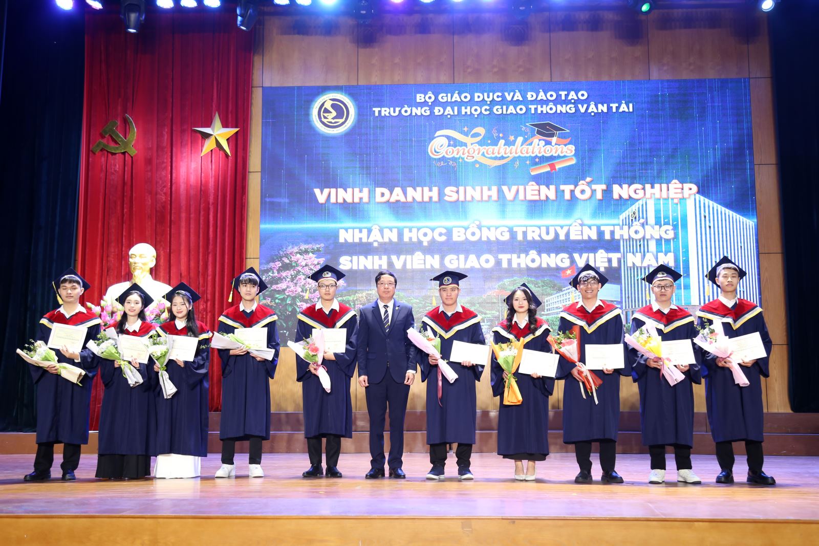 Tại buổi lễ Nhà trường cũng trao các suất Học bổng khuyến học Truyền thống Sinh viên Giao thông vận tải Việt Nam cho các sinh viên đạt thành tích cao trong toàn khóa học.