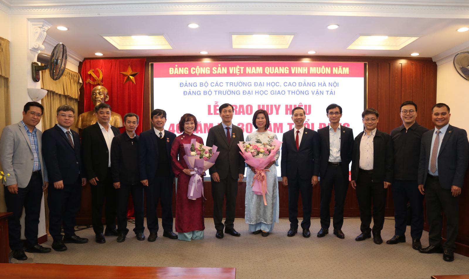 Trong đợt này Đảng bộ Trường có 4 đồng chí vinh dự nhận huy hiệu Đảng là các đồng chí Nguyễn Duy Việt - Chi bộ Điều khiển-Tự động hóa nhận huy hiệu 40 năm tuổi Đảng; đồng chí Vũ Xuân Vịnh – Chi bộ Giáo dục quốc phòng, đồng chí Nguyễn Thị Hòa - Chi bộ Khảo thí và Đảm bảo Chất lượng đào tạo, đồng chí Chu Kiều Linh - Chi bộ Cơ sở quản lý và kinh tế vận tải nhận huy hiệu 30 năm tuổi Đảng.