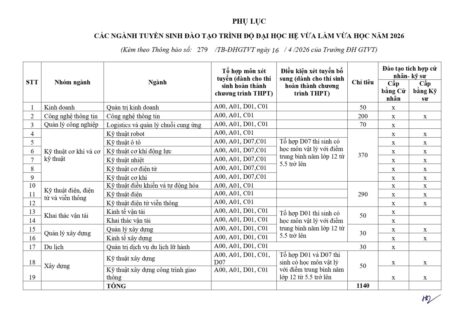 THÔNG BÁO Tuyển sinh đào tạo trình độ đại học hệ vừa làm vừa học năm 2026 Đính kèm: Phiếu TS VLVH 2026.docx Đăng bởi: Phòng Khảo thí & ĐBCLĐT