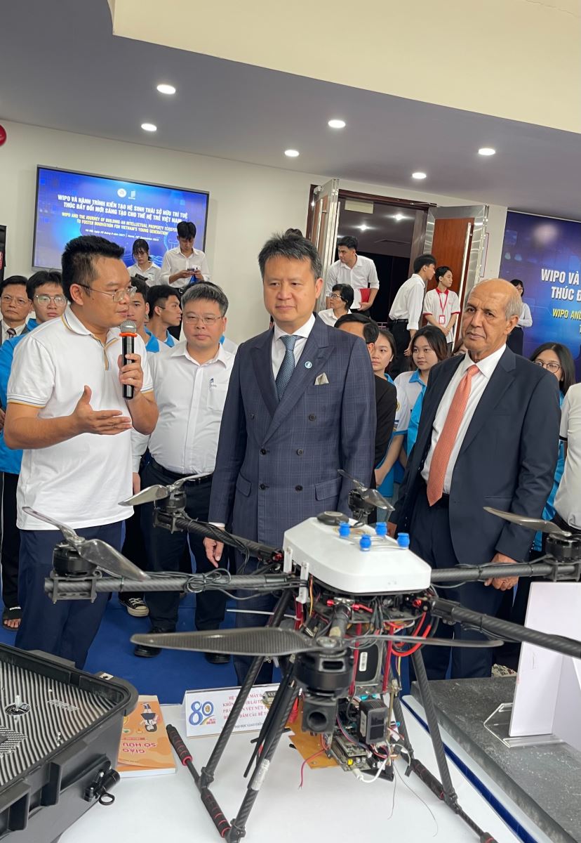 Buổi tọa đàm có sự hiện diện của ông Daren Tang – Tổng Giám đốc WIPO, PGS.TS. Hoàng Minh – Thứ trưởng Bộ Khoa học và Công nghệ, đại diện Cục Sở hữu trí tuệ và các trường đại học Việt Nam. Đại diện Trường Đại học Giao thông vận tải gồm PGS.TS. Nguyễn Thanh Chương – Bí thư Đảng ủy, Chủ tịch Hội đồng trường; PGS.TS. Nguyễn Văn Hùng – Hiệu trưởng; PGS.TS. Lê Hoài Đức – Phó Hiệu trưởng; cùng lãnh đạo các phòng ban chức năng và đông đảo sinh viên nhà trường.